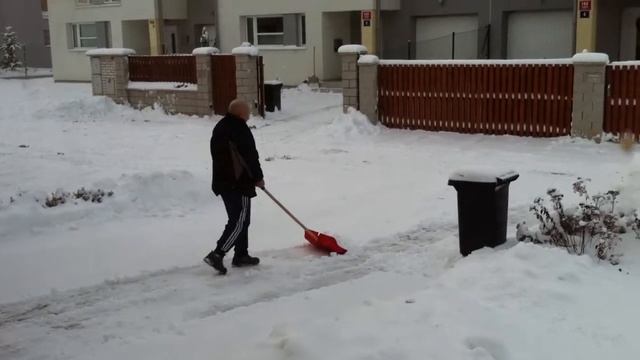 Дед чистит снег