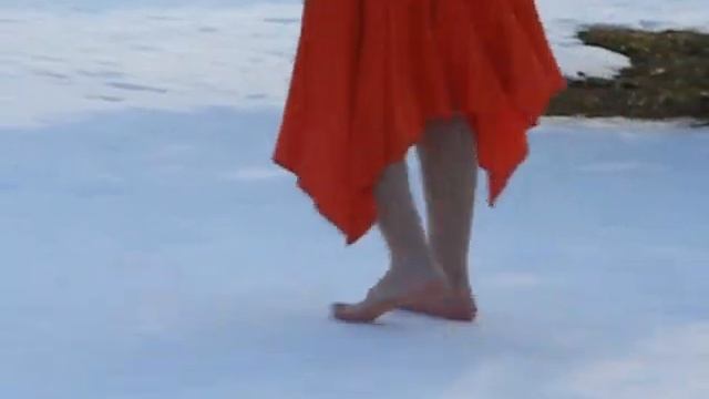 Она в красном босиком по снегу She in red barefoot in the snow