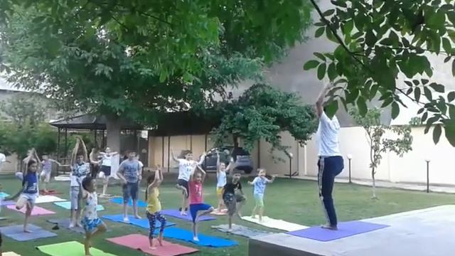 Занятия йогой с детишками в индийском центре г. Ташкента