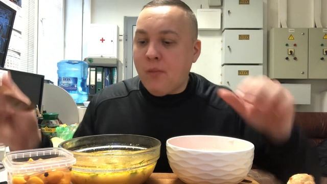 Суп солянка сам варил| мукбанг| колбасный кусь для малОй)