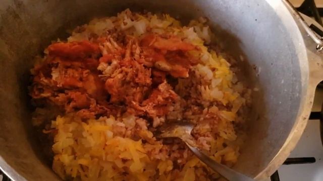 Постная каша из двух круп с рыбой.