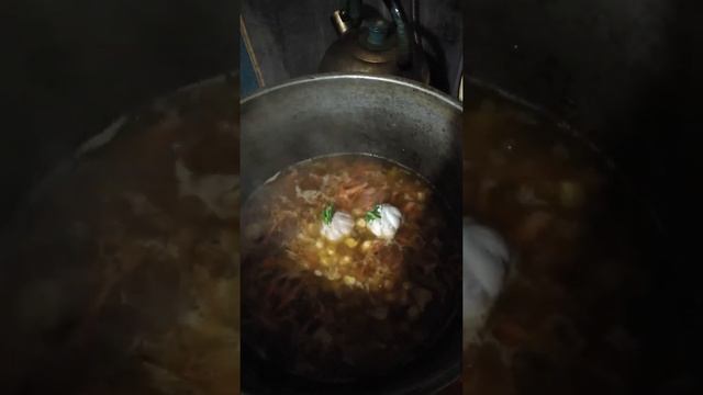 Готовлю узбекский плов в казане на газу.