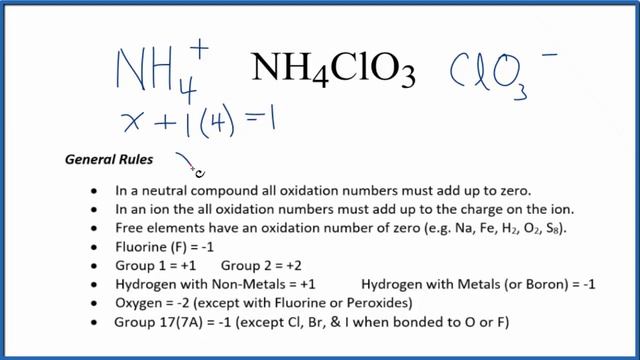 How to find the Oxidation Numbers for NH4ClO3 (Ammonium chlorate)