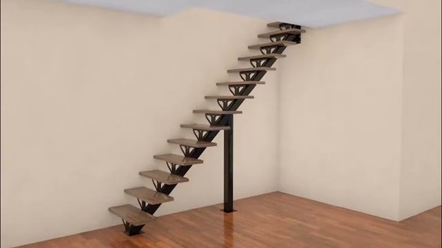 Проект лестницы на металлическом каркасе в дом на второй этаж.
