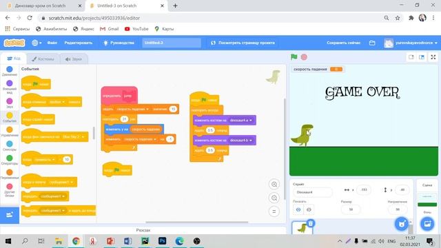 Scratch. Игра "Динозаврик Гугл"