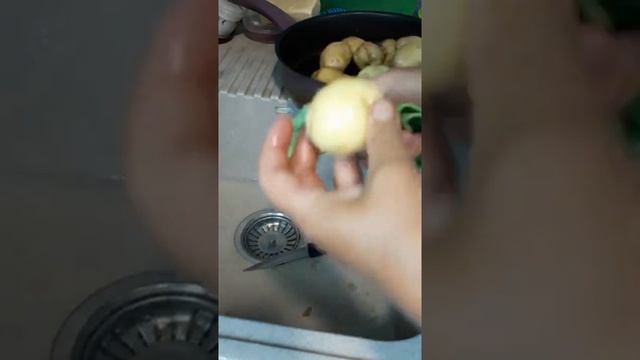 Чищу молодую картошку салфеточкой для посуды от GreenWay