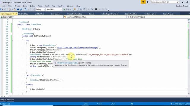 15. How to find elements inside iFrame: Selenium 2018 Tutorial using C# Visual Studio