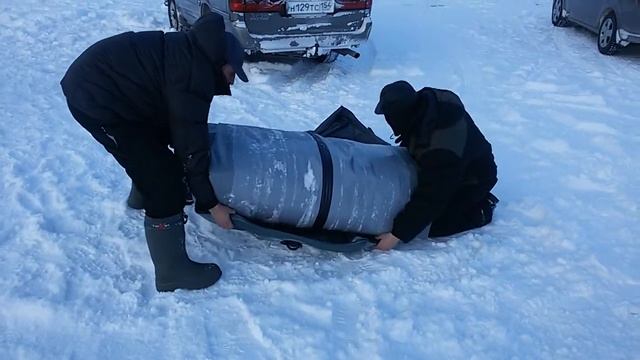 Сворачиваие лодки Аквилон 460 на морозе