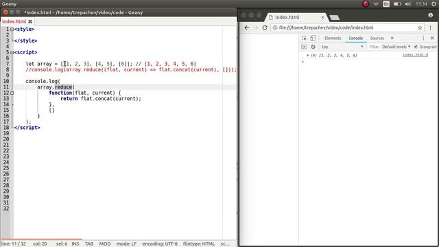 Использование метода reduce для преобразования двухмерного массива в одномерный