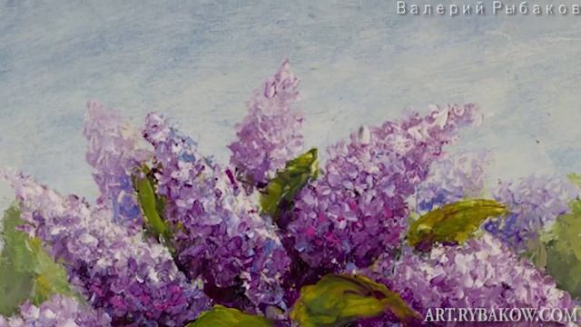 Букет сирени на реке - картина маслом и мастихином-купить картины