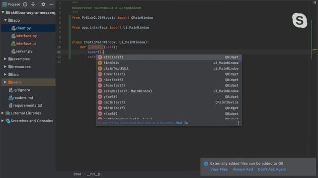Интерфейс мессенджера (PyQT)