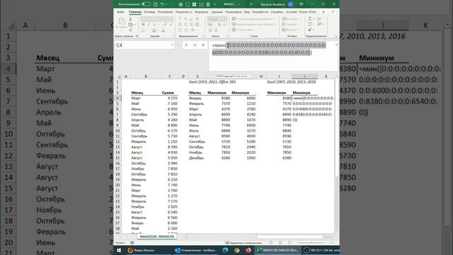Минимальное и максимальное значение по условию