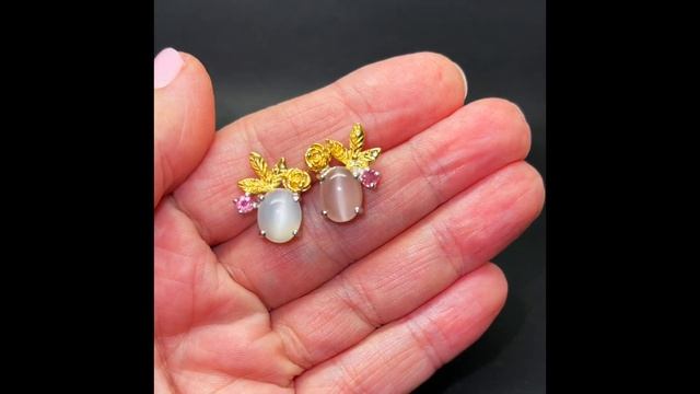Серьги с лунным камнем/с халцедоном серебряные