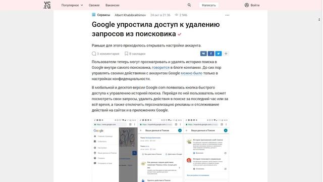 Google упростила удаление истории поиска - Новости Бизнеса