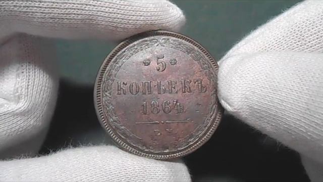 5 копеек 1864 ЕМ, медная монета Российской Империи