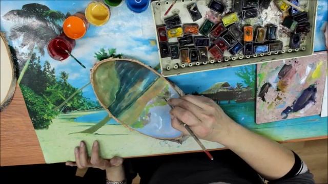 Пейзаж. Акварель на спиле