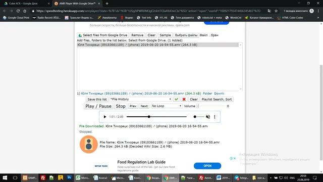 Воспроизведение аудиозаписей с Гугл Диска.