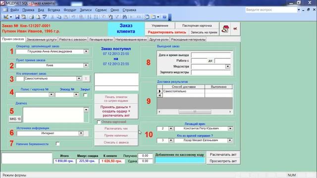 Как принять оплату в заказе в программе "МЕДУЧЕТ SQL"