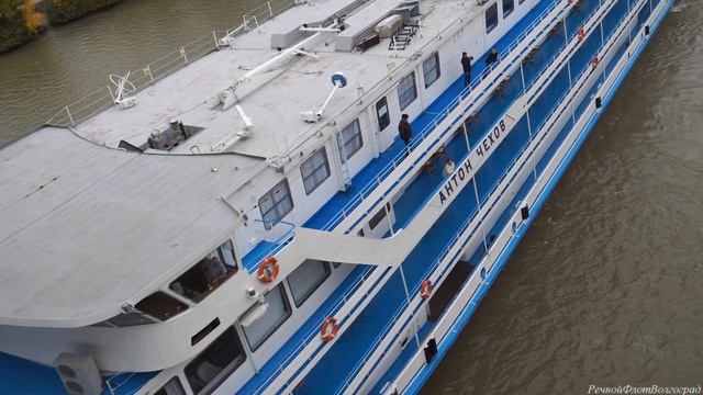 Пассажирский теплоход Антон Чехов выходит из 1го шлюза ВДСК