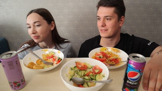 Мукбанг Ужин - Рис с наггетсами и салат | Mukbang