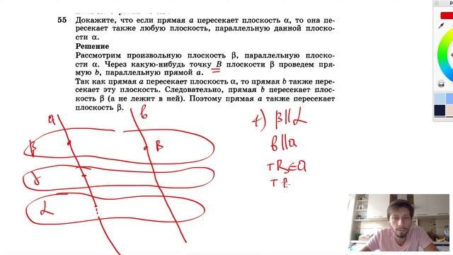 №55. Докажите, что если прямая а пересекает плоскость α, то она пересекает также любую