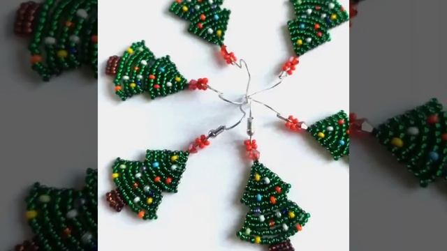 Сережки ялинка, зелені сережки з бісеру, новорічний подарунок сережки.різдвяні сережки своїми рукам