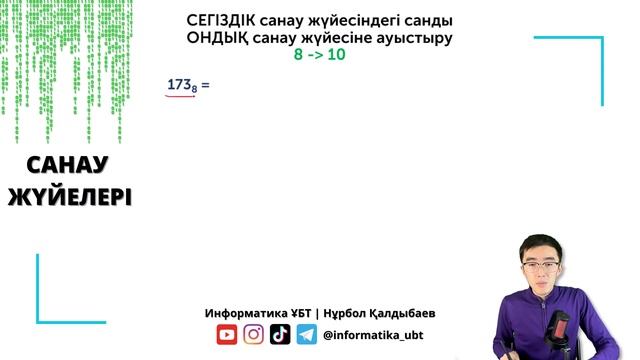Тегін сабақ: САНАУ ЖҮЙЕЛЕРІ (екілік, сегіздік, ондық, он алтылық) | Информатика ҰБТ-ға дайындық