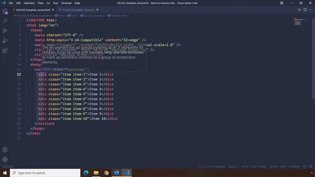 HTML-CSS Tutorial Lesson 64: Grid Template Areas - Grid #4