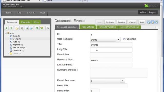 Page Settings 1, MODx Content Management System Training Part 5