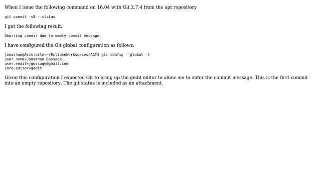 Ubuntu: Git commit message problem