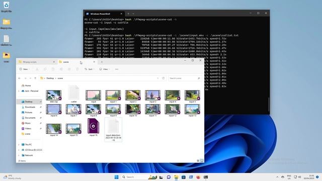 ffmpeg scene detection on Windows 11 with shell scripts and cygwin