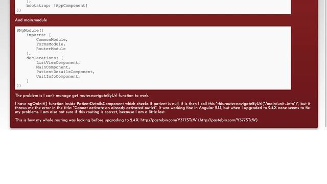 Angular 2 router, Error: Cannot activate an already activated outlet