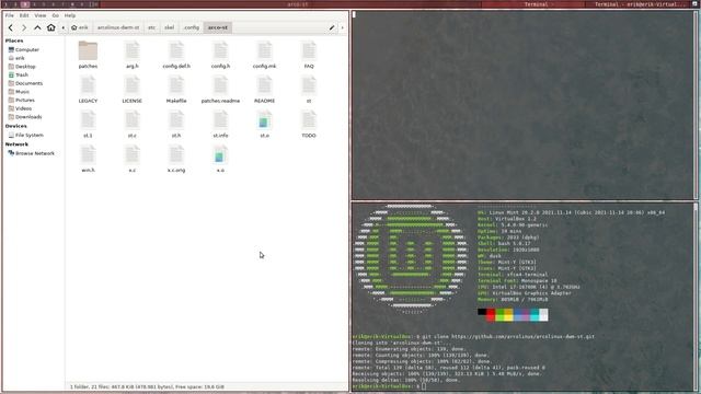Linux Mint 20.2 Playing with Dusk, Arco-Dusk, St, Arco-St - theming Dwm