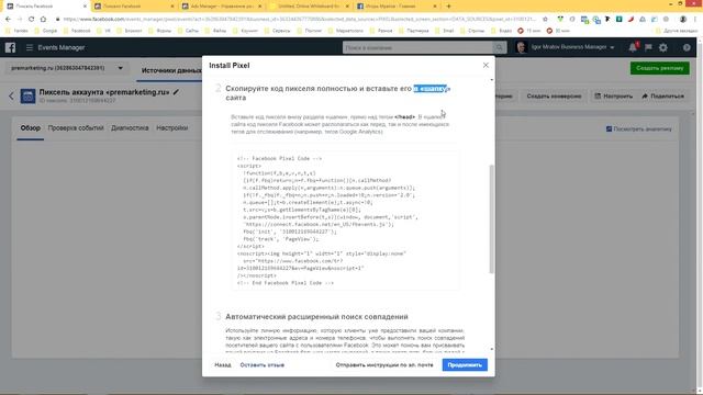 Создание пикселя Facebook в новом рекламном аккаунте