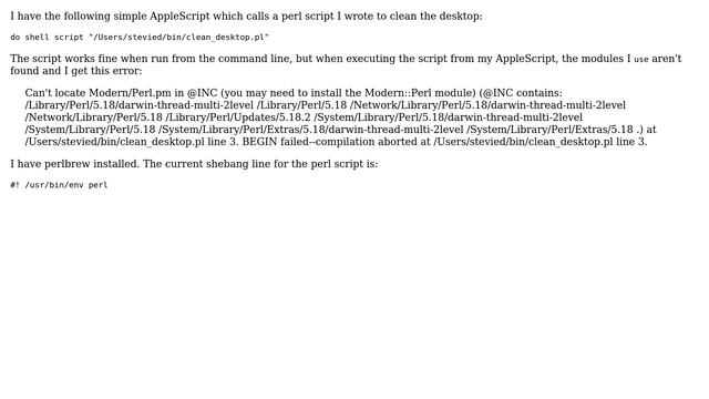 Apple: Proper shebang line for running perl script with an AppleScript on a perlbrew install?