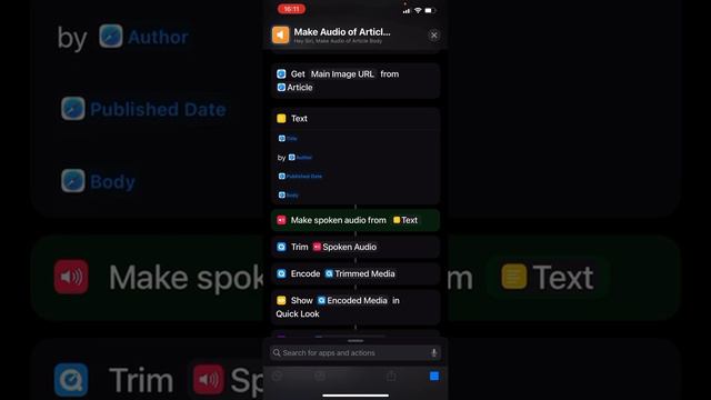 “Make Audio from Article Body (TTS)” Siri Shortcut Demo (iOS 15 Developer Beta 6)