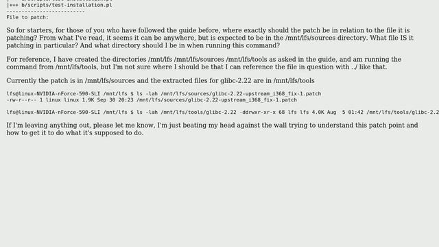 Unix & Linux: LFS Troubles - Applying Patch in Section 5.7.1 (2 Solutions!!)
