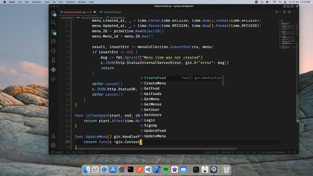 Golang Restaurent Management Api: Menu Controller, Updating The Server