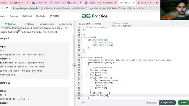 Nth node from end of linked list || DSA || javascript || GFG || Linked List Part-6