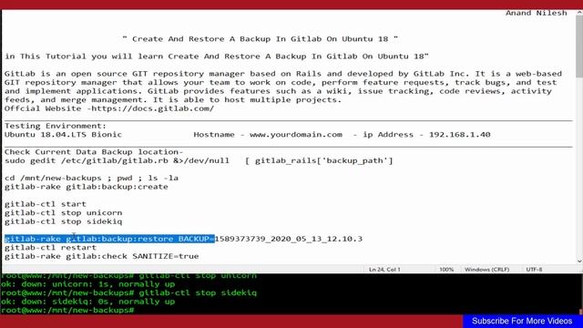 How To Create & Restore A Backup In Gitlab On Ubuntu 18