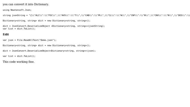 How to convert Json to List in c# without dependant class? (2 Solutions!!)