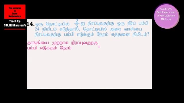 MCQ 14 | GCE O/L | Maths Past Paper - 2011 | தமிழில் | Git educstion