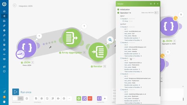 How to use array aggregator and iterator in Integromat
