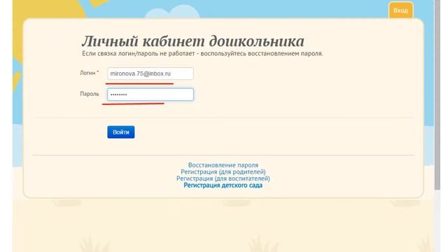 Личный кабинет дошкольника