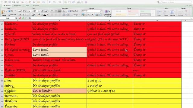 Crypto currencies Alert: Github progress is poor or don't have developer profiles or both