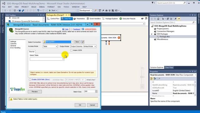SSIS MongoDB Source - Read multiple arrays from JSON document
