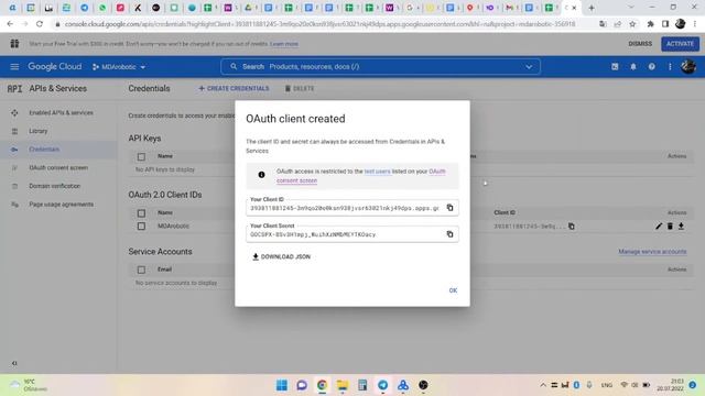Создание JSON (API ключ). MDARobotic