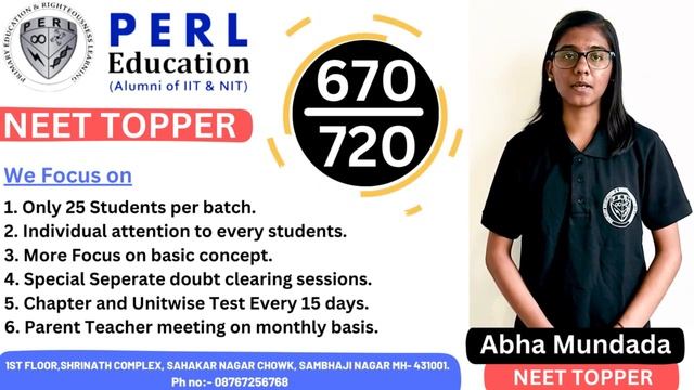 Neet 2023 Topper | Abha Mundada | Perl Education