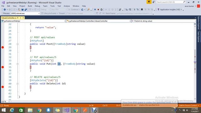 Consume Web API POST,PUT,DELETE methods in ASP.NET CORE via Postman