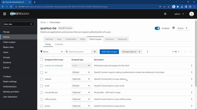Part 2 - Configuring the keycloak server for REST API usage.